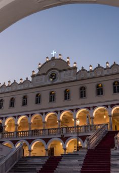 Also known as Panagia Evangelistria, it is one of the island’s main attractions. People from all over the world travel here every year for worship. Built in 1823, it is distinguished for its brilliant architecture with the white Tinian marble causing admiration to anyone who sees it. It is also here that the icon of the Annunciation of the Virgin Mary was found. It is worth visiting it and seeing the unique relics it has inside.